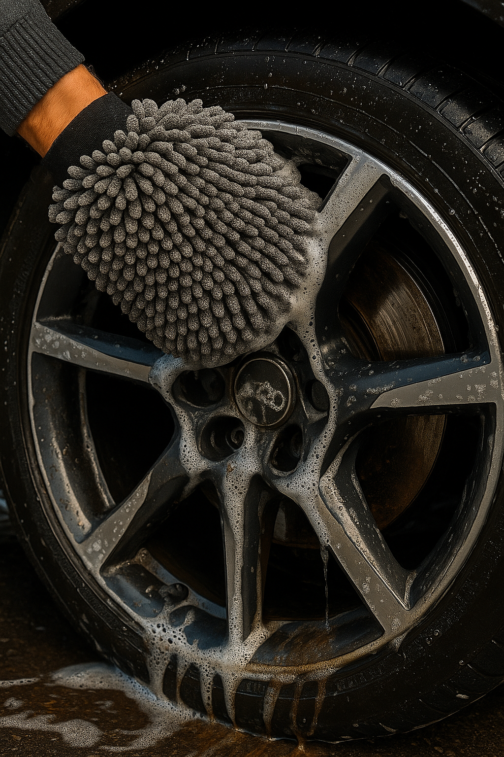 - 1x Premium Waschhandschuh (schwarz-weiß) – für gründliches Abwaschen ohne Lackschäden